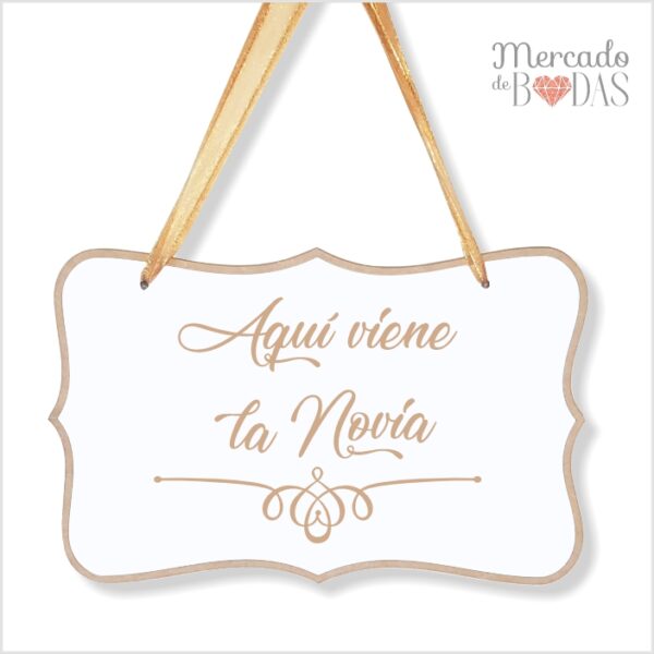 Cartel de matrimonio Marquesina blanco “Aquí viene la novia”