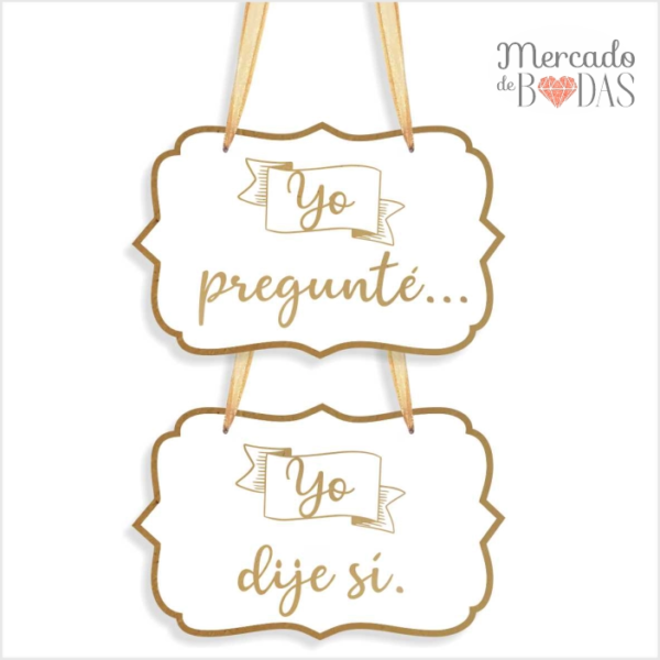 Carteles blancos para boda “Yo pregunté – Yo dije sí”