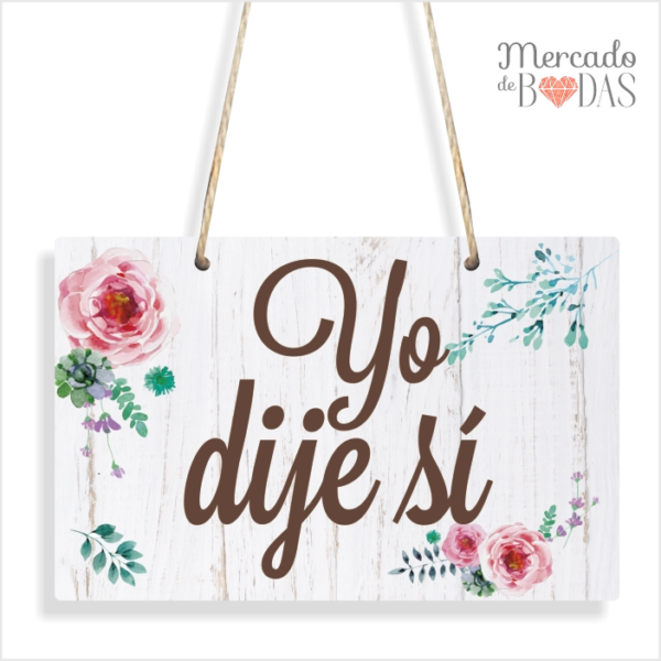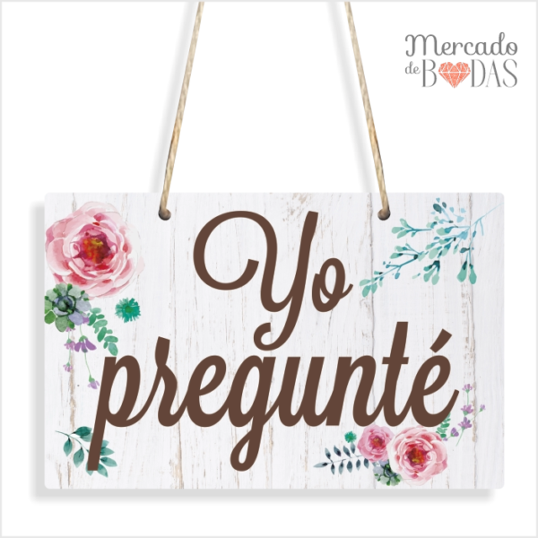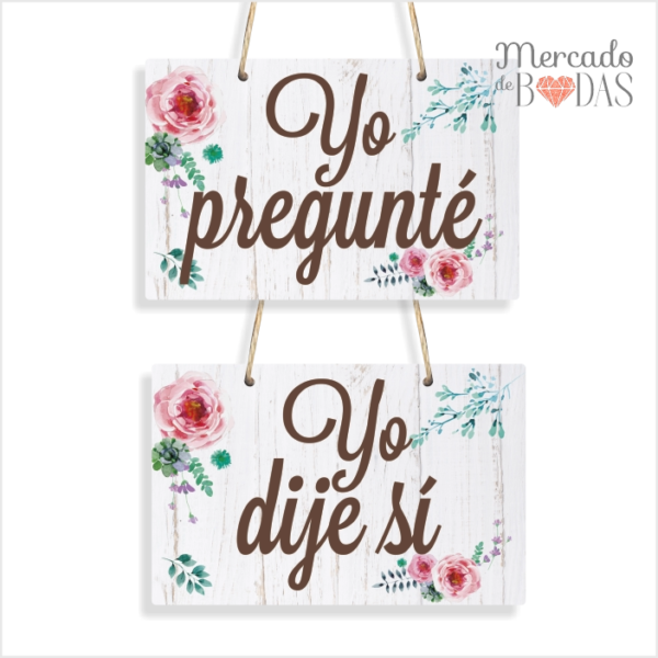Carteles para sillas de novios florales “Yo pregunté – Yo dije sí”