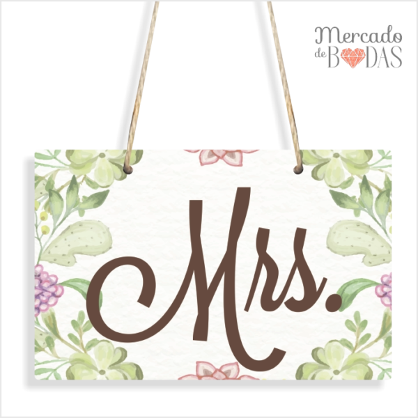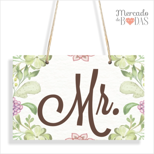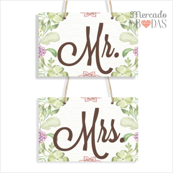Carteles para sillas de novios follaje “Mr – Mrs”