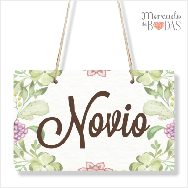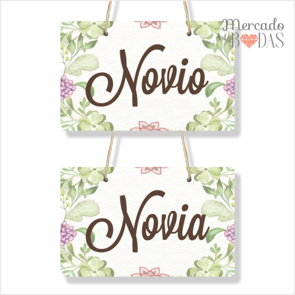 Carteles para sillas de novios follaje “Novio – Novia”
