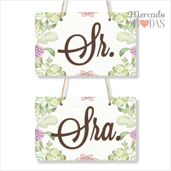 Carteles para sillas de novios follaje “Sr – Sra”