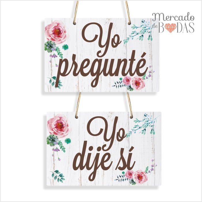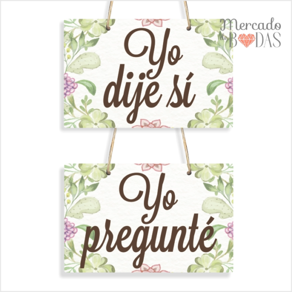 Carteles para sillas de novios follaje “Yo pregunté – Yo dije sí”