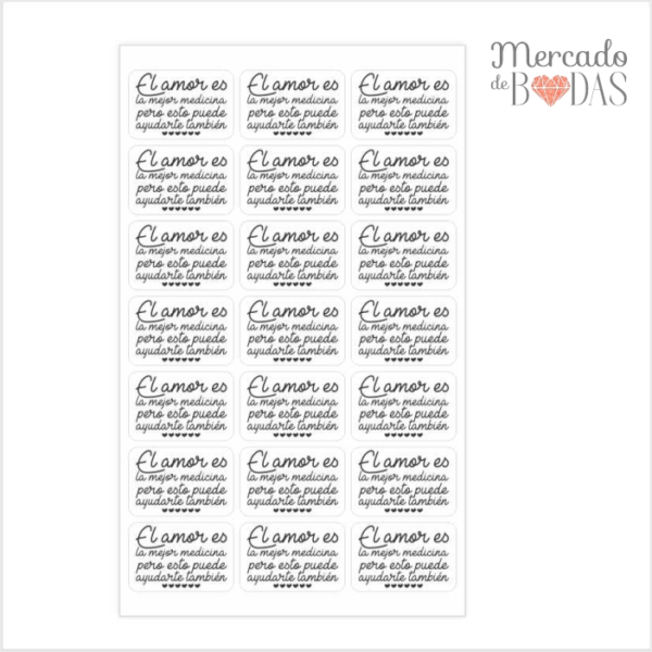Sticker cajas mini “El amor es la mejor medicina pero esto puede ayudarte también”
